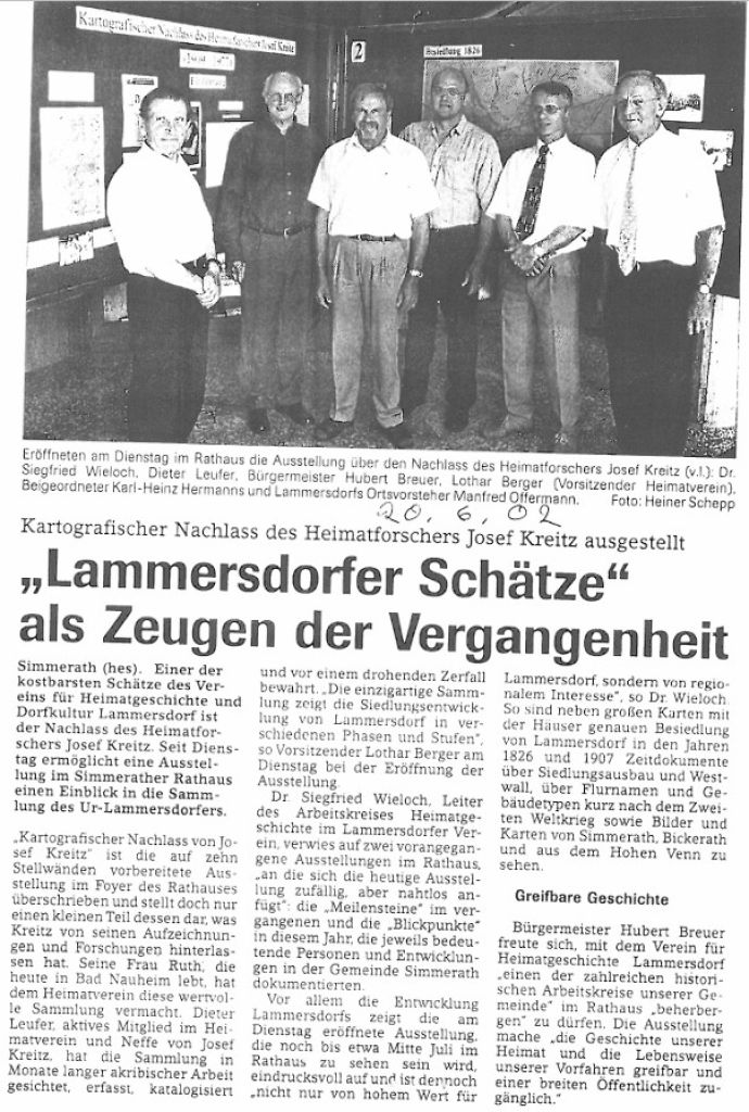 Einer der kostbarsten Schätze unseres Vereines ist der Nachlass des Heimatforschers Josef Kreitz. Seine Frau Ruth hatte dem Heimatverein diese wertvolle Sammlung vermacht.