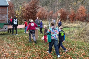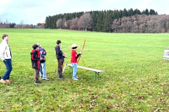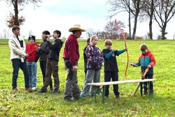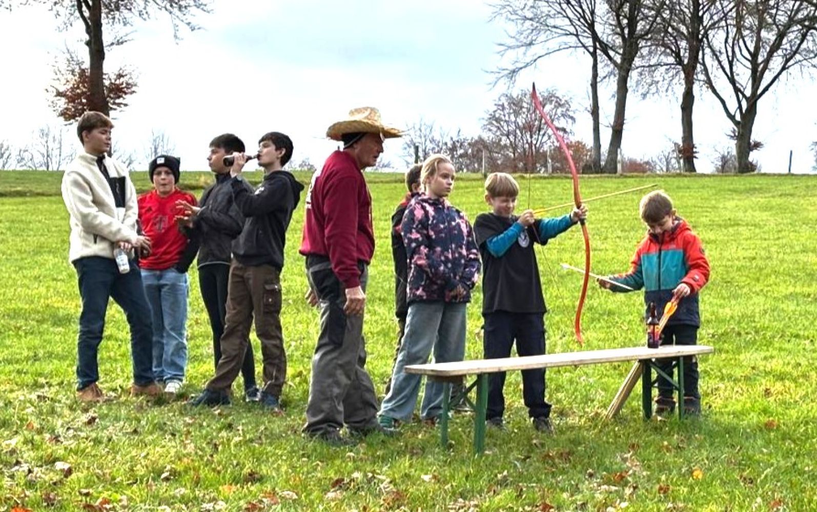 Unter fachkundiger Organisation von Ralph Mertes wurde der Planwagen beladen und die Fahrt konnte beginnen. Unterwegs haben die Jugendlichen ihr Geschick mit Pfeil und Bogen bewiesen.